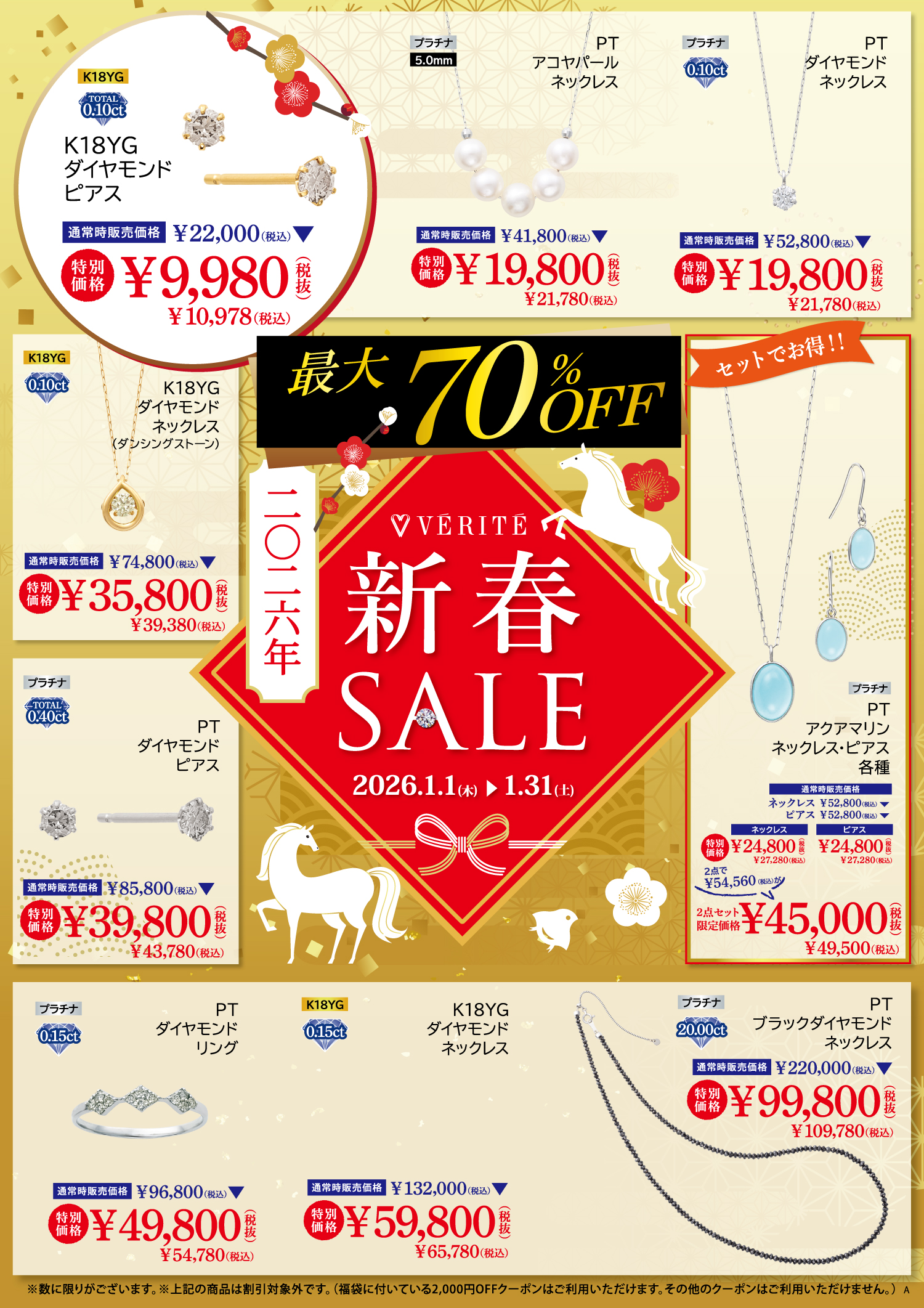 ベリテでは、2026年の新春を飾るにふさわしいお得で豪華な新春SALEを開催いたします。