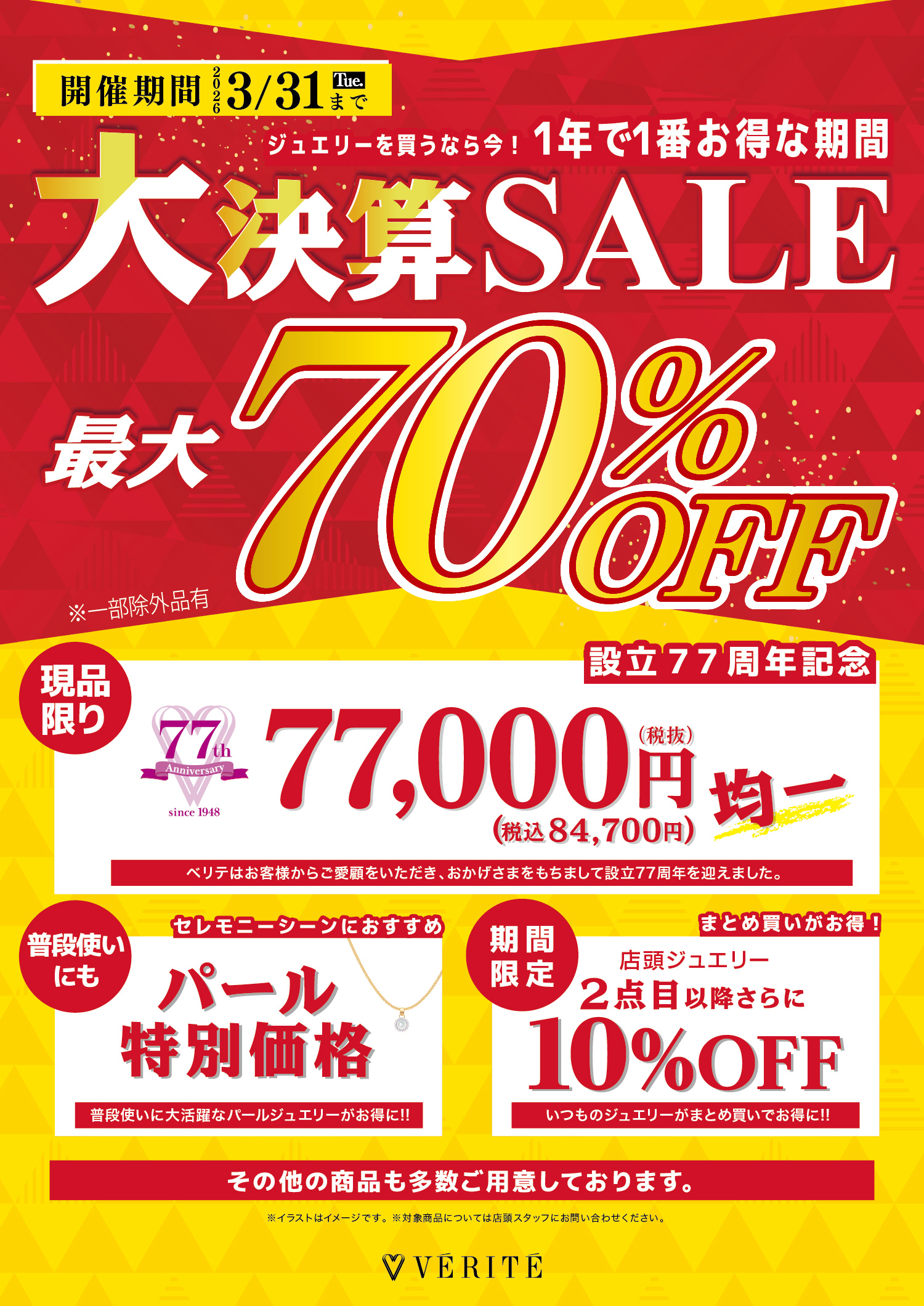 ◆設立77周年記念!77,000円(税込84,700円)均一コーナーが登場!(~3/31)
