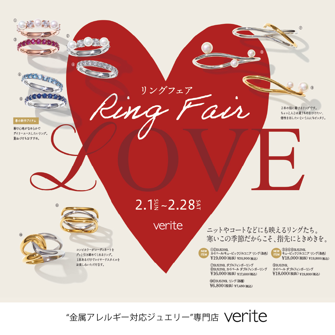 2026.2.1(日)より金属アレルギー対応ジュエリー専門店veriteのリングフェアがスタート!寒いこの季節だからこそ、指先にときめきを。